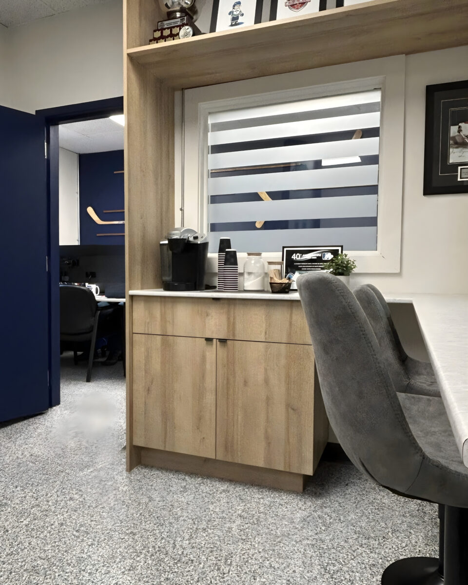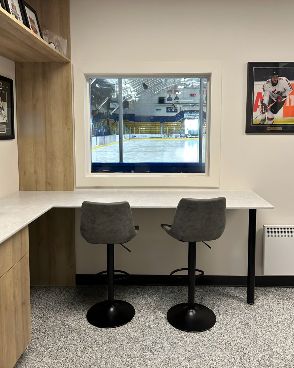 Collaborer avec l’équipe du hockey mineur pour le réaménagement du bureau de gestion. Un projet qui nous tient à cœur, sachant toute l’importance et la signification que cette aréna a pour les familles de notre région.
