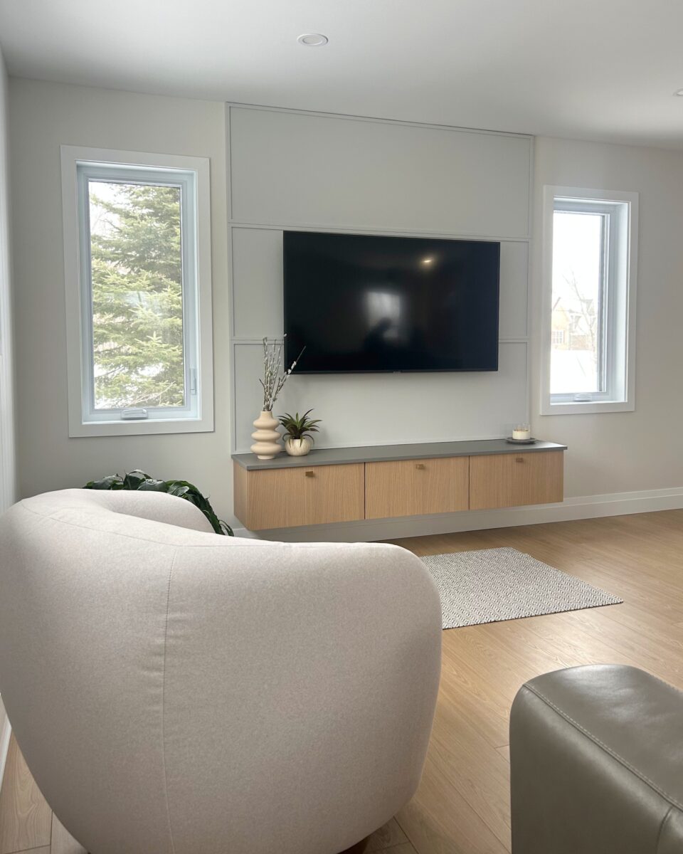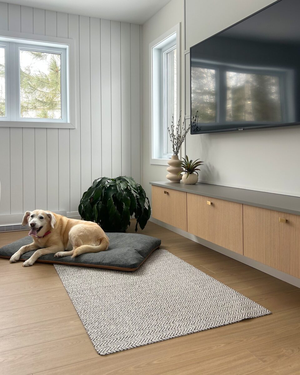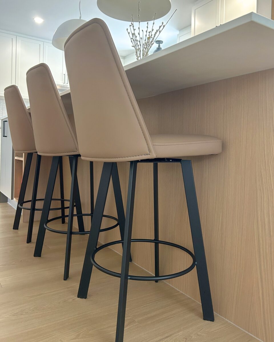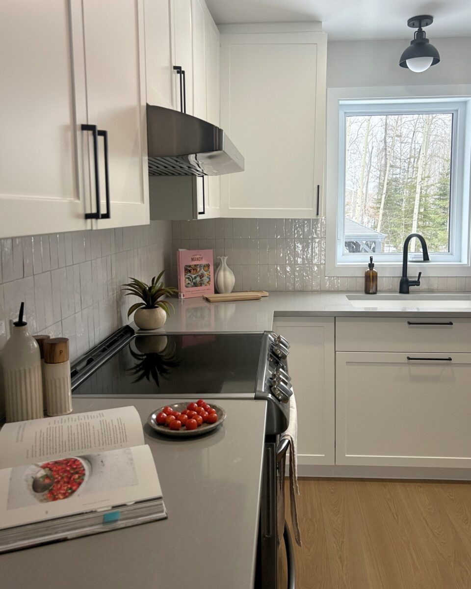 La cuisine faisait déjà partie de la maison, mais l’agrandissement a ouvert la porte à un tout nouveau potentiel. En repensant l’espace, nous avons pu intégrer un grand îlot central et un back kitchen optimisé, agrandir les caissons et harmoniser l’ensemble afin de créer une cuisine lumineuse, fonctionnelle et parfaitement adaptée au mode de vie des propriétaires.